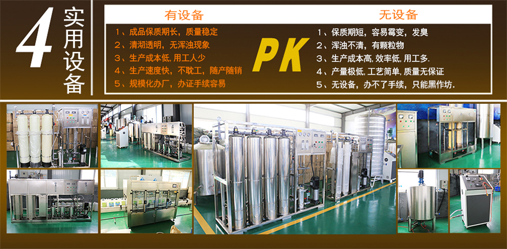 采用流水生產(chǎn)線,從吹瓶到原料調(diào)配,自動(dòng)灌裝,包裝直至出成品,一氣呵成。 設(shè)備從大型,中型,小型,設(shè)備齊全,滿足不同客戶的辦廠需求.